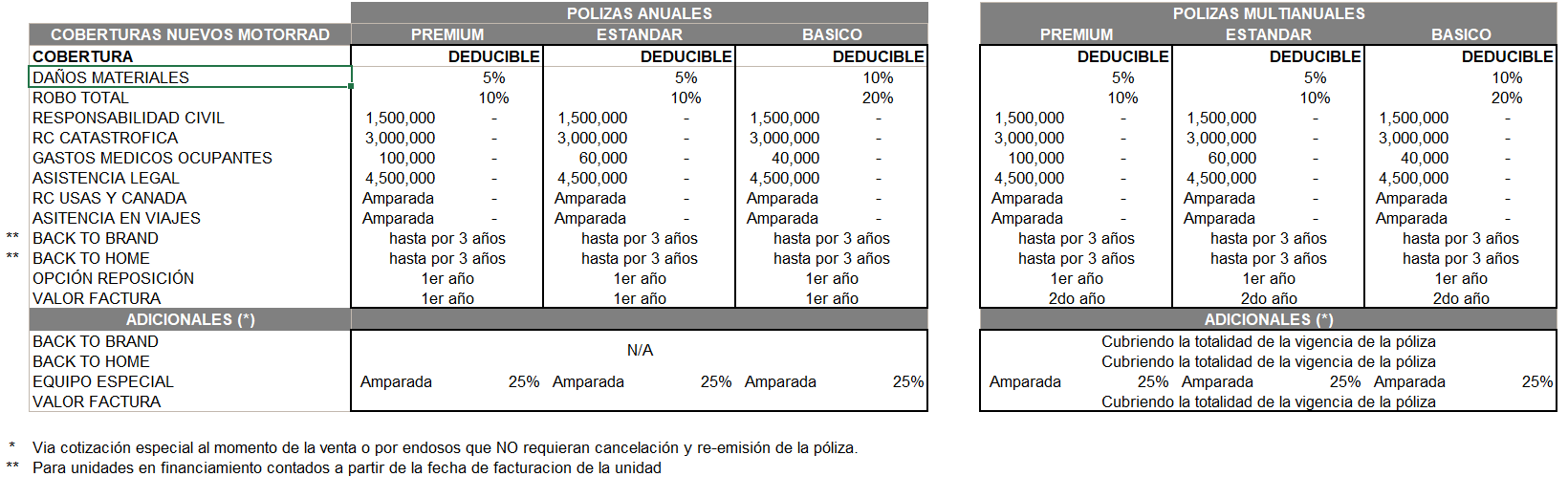 .Las coberturas pueden variar de acuerdo a los paquetes que hemos diseñado para usted: Premium, Estándar o Básico.